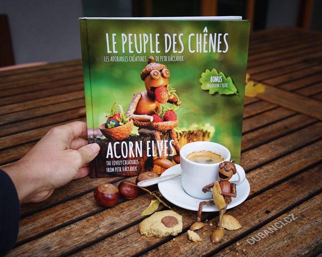Můžete si ji prohlédnout a prolistovat na e-shopu: Fotografická kniha: Acorn Elves / Le peuple des chênes.