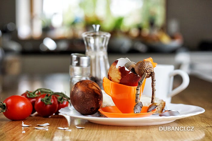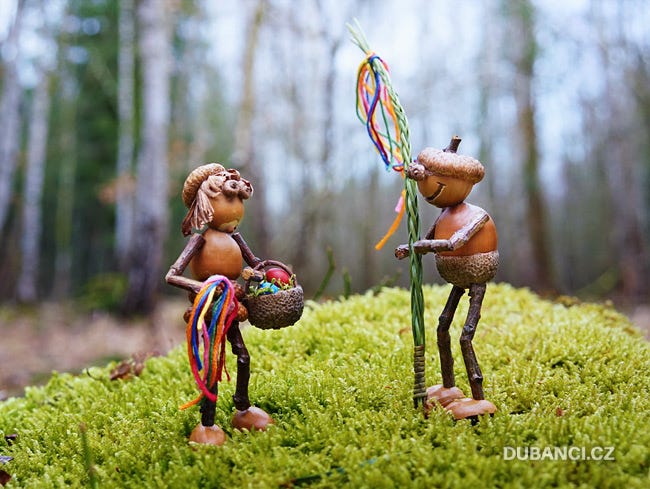 Duběnka jim poté věnovala nějaké to vajíčko a stužku na jejich tatar upletený z jehlic borovice.
