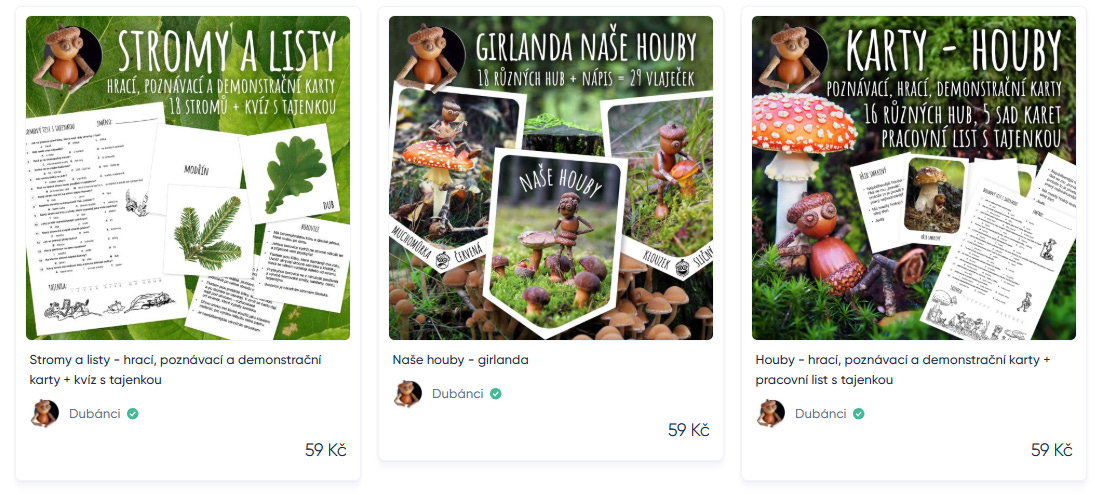 Vezmu to jen stručně, připravil jsem dva nové produkty s kartami - Naše houby a Stromy a listy. To mi připomíná, že 20. října bude den stromů, tak pokud ve škole / školce / družině či knihovně chcete něco se stromovou tématikou, tak na učitelnici najdete tyto dubánčí materiály: