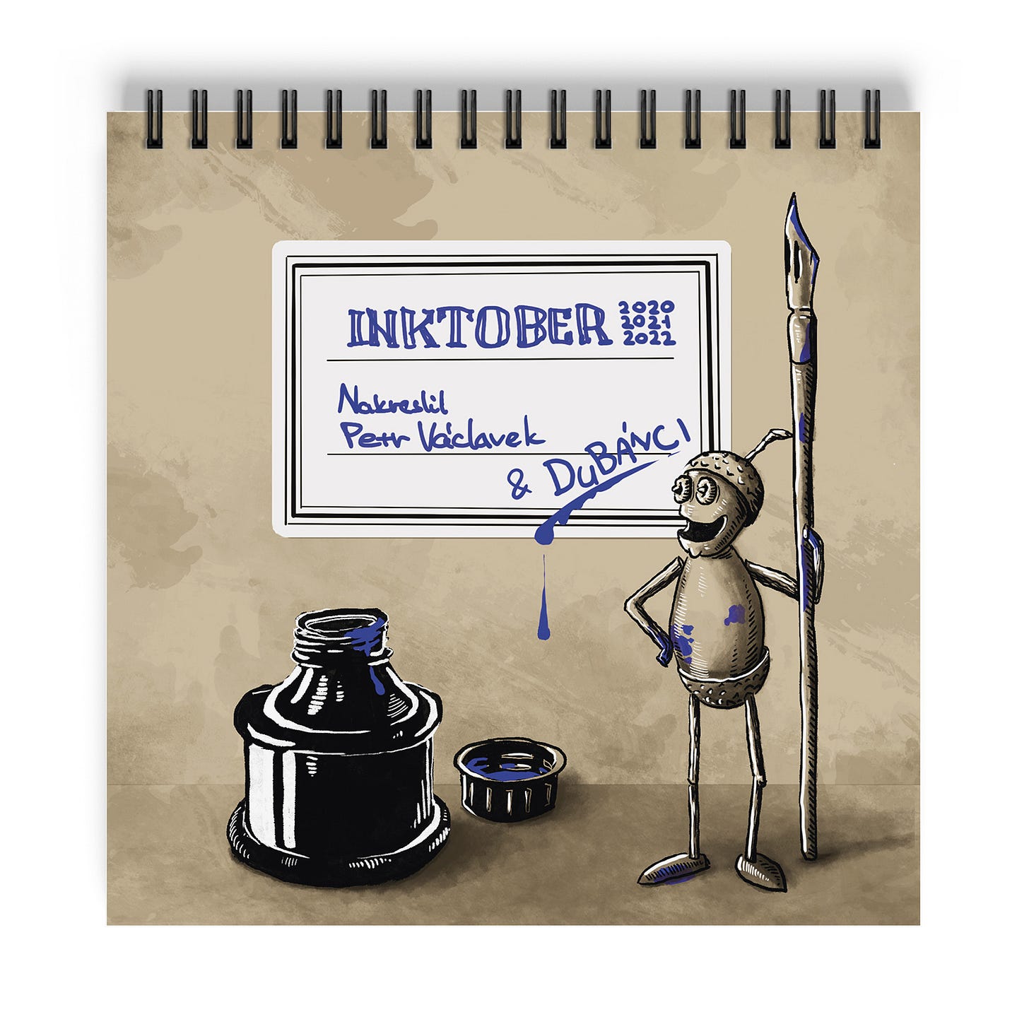 To je taková výzva pro všechny grafiky, kreslíře, malíře - je to celosvětová událost, kdy se během září oznámí seznam jednoslovných témat na říjen a pak všichni podle něj každý den kreslí. Já jsem ho úspěšně až do konce absolvoval už několikrát - 2017, 2018, 2019, později jsem kreslit inktobery s dubánky - 2020 a 2021, ty nejlepší obrázky jsem pak dal do malé knížečky Inktober 2020 - 2022: