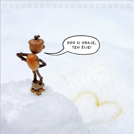Usilovně na něm pracuji, už má asi 30 stran. Zasekl jsem se u tohoto obrázku, ke kterému jsem pořád nemohl vymyslet vhodné “moudro“ - to stávající “Kdo si hraje, ten žije“ mi nepřišlo až tak dobré. Nakonec jsem vystavil obrázek na sociálních sítích a tam to nejlépe vystihla Ladislava R.: “Cokoliv děláš, dělej s láskou”.