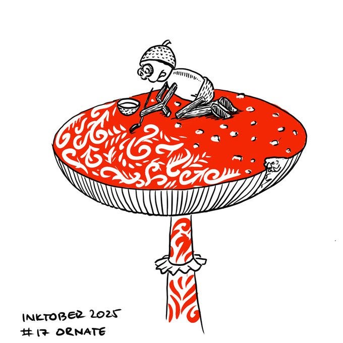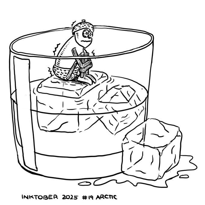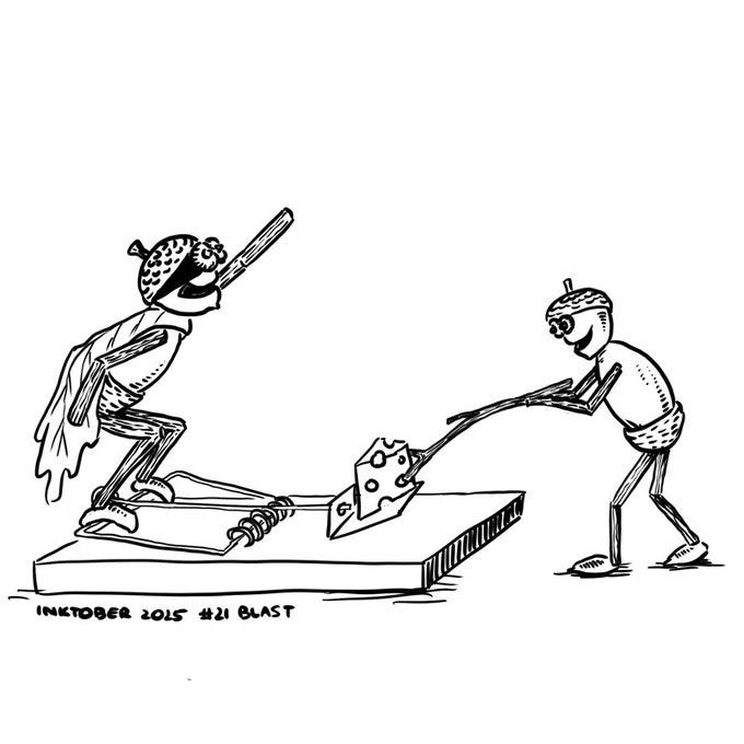 Inktober se už přehoupnul do své druhé poloviny a já jsem s úžasem zjistil, že stále ještě stíhám kreslit! Možná je to tím, že si to zjednodušuju a kreslím jen “omalovánky“. Ale stejně největší čas mi vždy zabere vymyslet, co nakreslit, aby to mělo nějaký vtip a myšlenku. O tom, jak se mi to ne/povedlo se můžete přesvědčit tady: