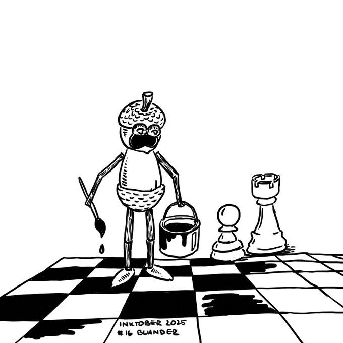 16. Inktober téma bylo #BLUNDER (chyba, bota, omyl) a syn říkal, že se to hodně používá v šachách, tak jsem musel udělal jeden šachový blunder.
