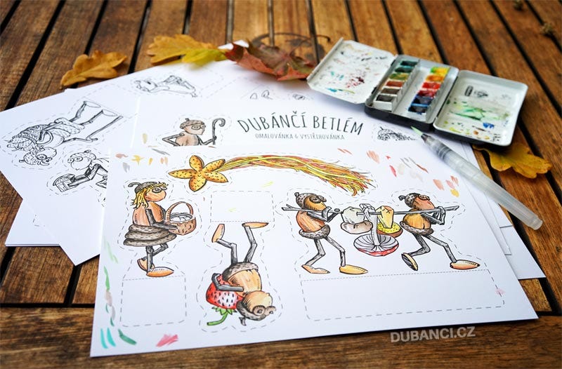 Teď usilovně pracuji na malém sdventním kalendáři s omalovánkami, ale tedy nevím, jestli to stihnu :) Pokud ne, tak můžete dětem dávat po částech Dubánčí betlém na omalovávání a vystřihovávání: