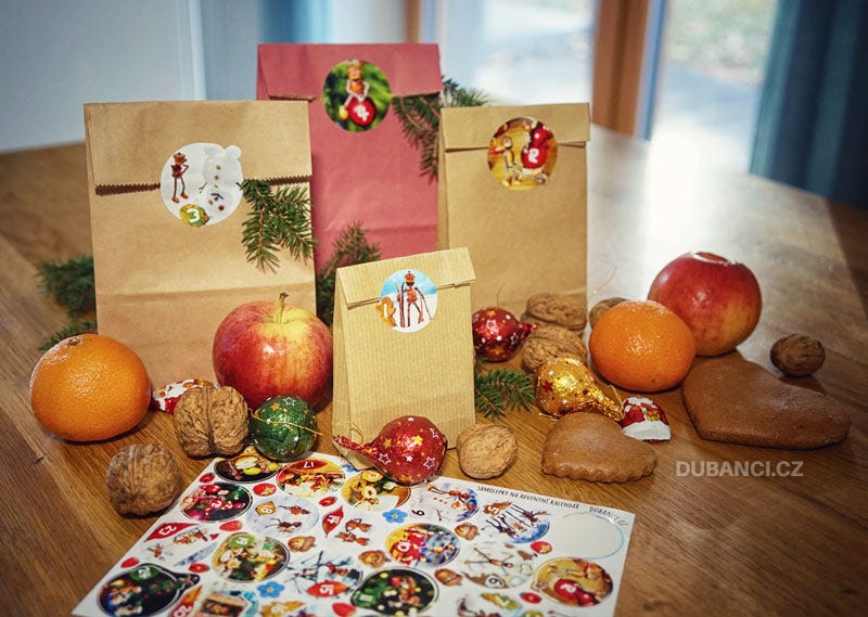 Při zabalování pak můžete využít Dubánčí samolepky pro adventní kalendář.