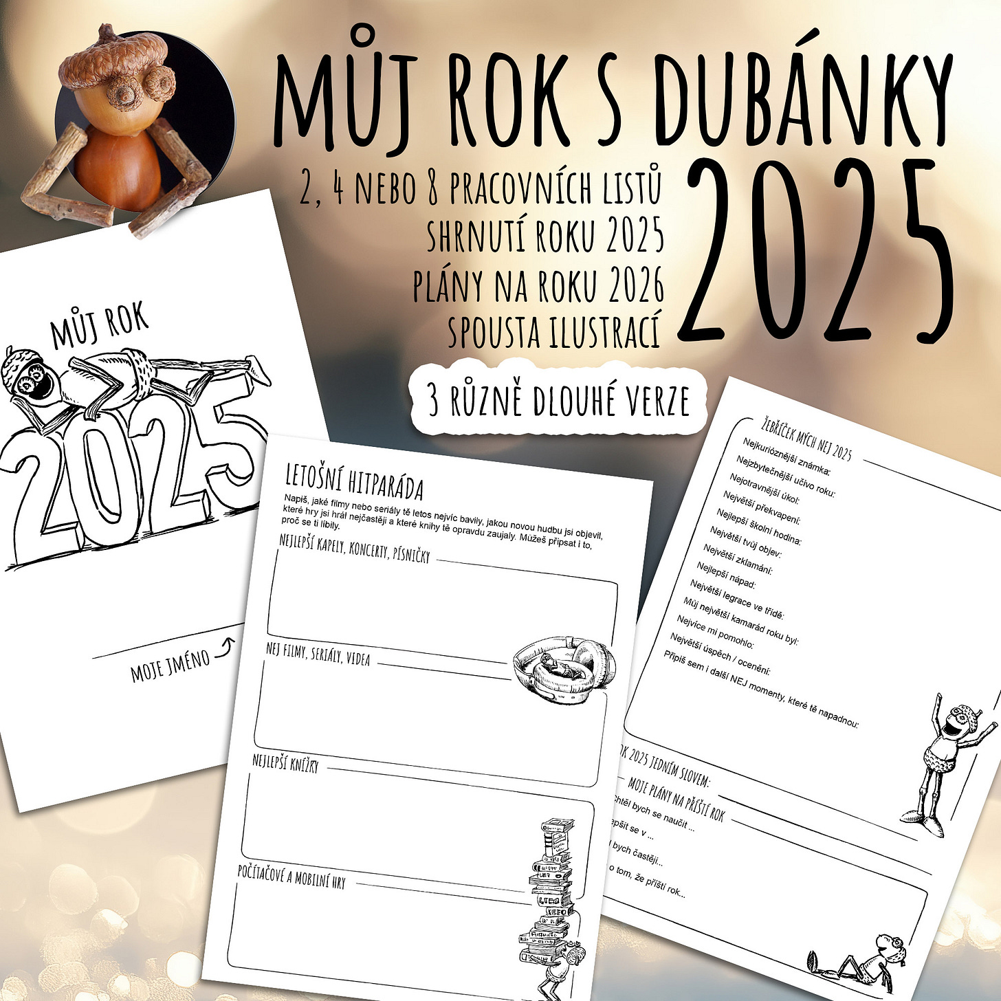 Znáte to, konec roku, to je čas bilancování, zhodnocení toho, co se (ne)povedlo, vzpomínání na to nej nej a taky plánování dalšího roku. Dospěláci na to mají spoustu nástrojů - viz podrobný článek mé manželky: Jak bilancuji a plánuji aneb tipy na užitečné nástroje zdarma, ale co děti? Proto jsem pro ně vyrobil pracovní listy Můj rok 2025 s dubánky.
