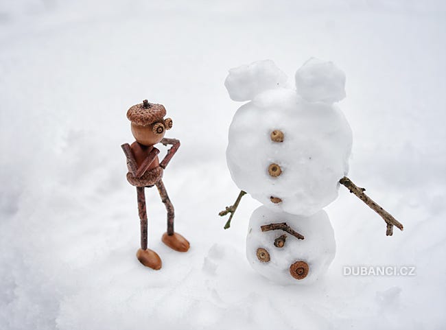 Už jste letos stihli postavit sněhuláka? Dubánek horkotěžko vzpomíná, jak ho loni stavěl a evidentně si to moc dobře nepamatuje :)