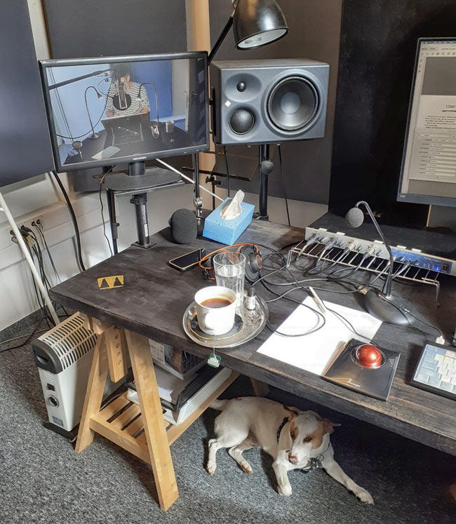 Ve čtvrtek jsme byli s Klárou Smolíkovou na zahájení nahrávání audioknihy. Uprostřed je Jan Zadražil (namluvil například audioknížky Zeměplochy). Tady máte ještě jeden zákulisní pohled: