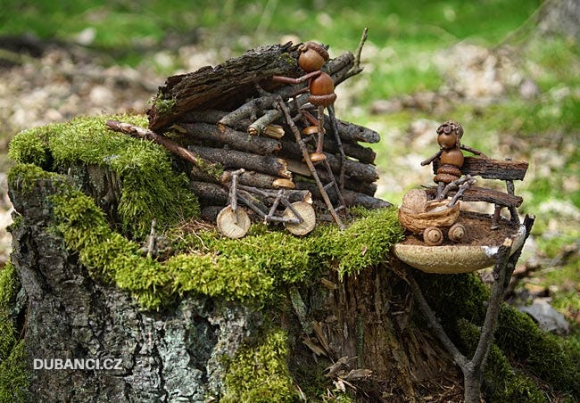 Dubánci už také vyrazili okouknout svou letní chatičku, kterou jim postavily děti na pařízku. Dubánek si tam vzal i kolo, ale nejprve musí opravit střechu a duběnka si zatím dopřává krátký odpočinek než se dubánčátko probudí :)