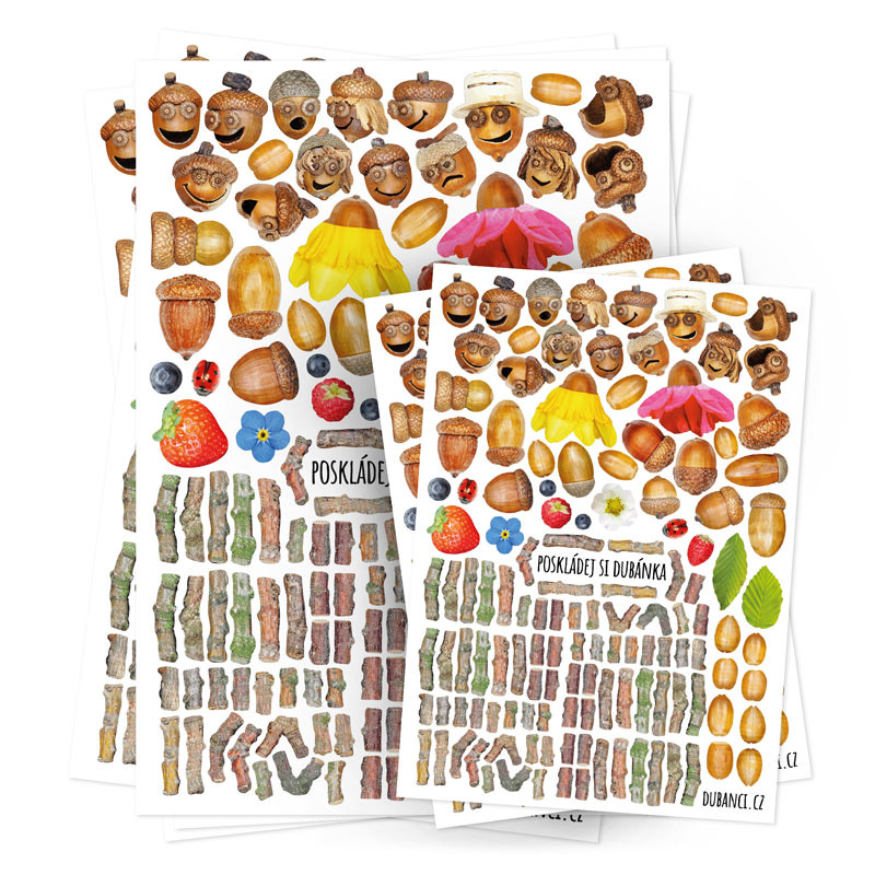 Na začátku dostane každé dítě papír nebo kartičku a poté za každý splněný úkol si může vybrat jednu samolepku z archu a tak postupně si slepit / nalepit dubánka - to máte 6 až 12 samolepek, záleží na tom, jak se postavíte k nožičkám :) A nakonec nemusíte zůstávat jen u jednoho dubánka, děti jich můžou slepit více. Na jednom archu je dostatek součástek na 14 dubánků!