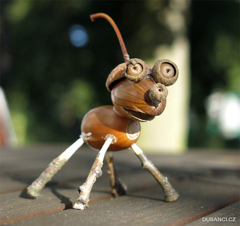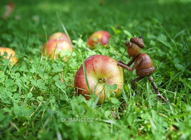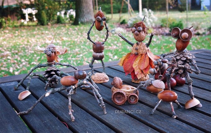 Taky děláte rozličná zvířátka z kaštanů, žaludů a oříšků? Tak pozor ať se vám to nezvrhne tak jako mně. Tohle jsou totiž prapředci dubánků, které jsem slepil přesně před 10 lety!