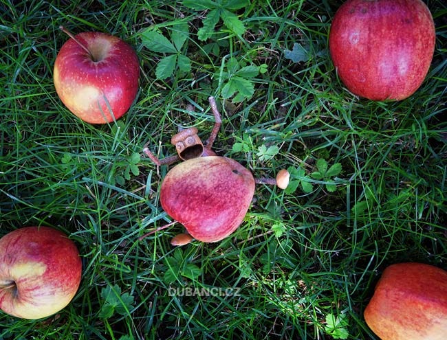 Ale dubánek má naštěstí hlavu dubovou (a vlastně i celé tělo), takže se z toho oklepal a už si kutálí jablko domů, asi bude píct nějakou jablečnou buchtu. Poradíte mu nějaký dobrý recept?