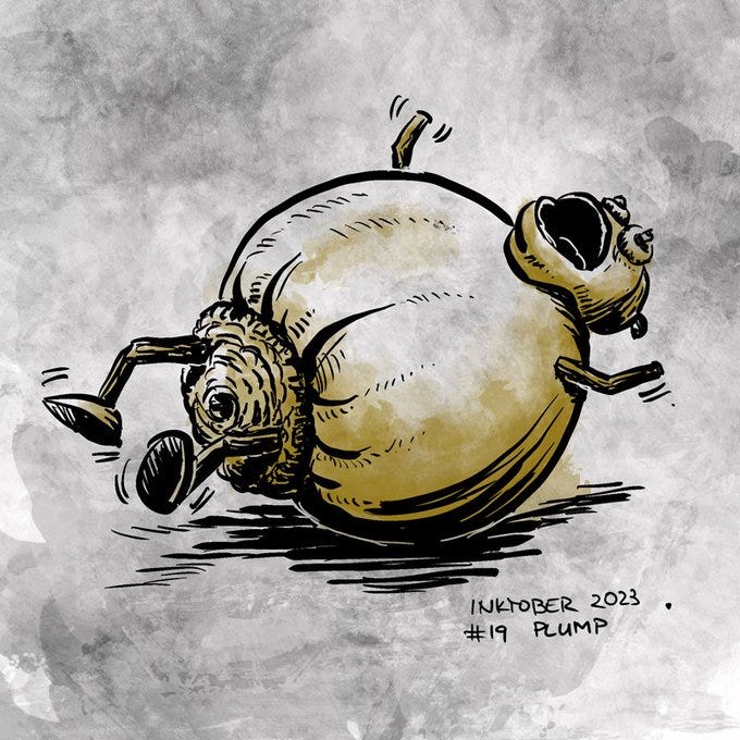 Letos jsem se rozhodl Inktoberu nezúčastnit - neměl jsem na to dosti času, takže bych si to vůbec neužil. Ale to neznamená, že ho nesleduji! Minulý týden jsem si dokonce našel chvilku času a pár kresbiček nakonec také namaloval. Kdo neví, co to ten Inktober je, tak tady je odkaz na ten loňský: Dubánčí inktober 2022.