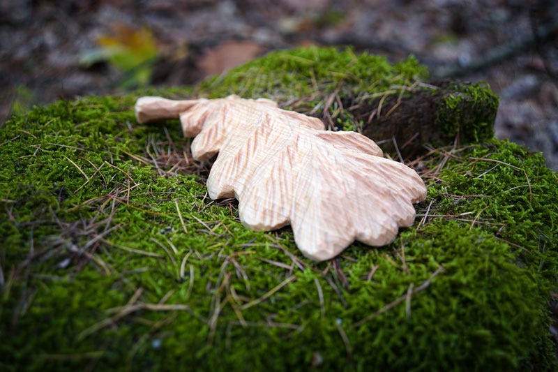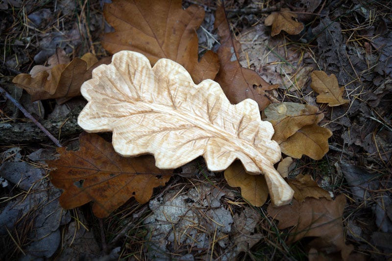 Onehdá jsem tu dával fotky vyřezávaného dubánka, dnes ukážu další dílko - vyřezávaný dubový list jako miska na drobnosti - třeba šperky: