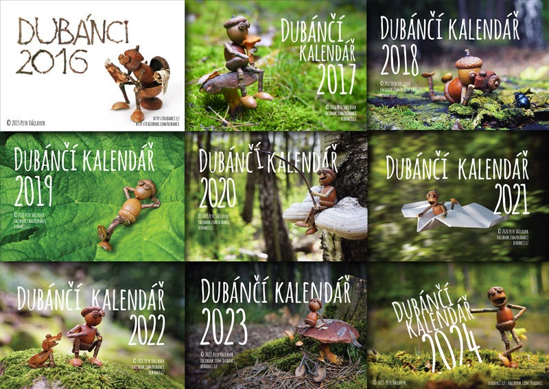 Nejsem si jist, zda se vám ve vašem emailu správně zobrazí tento animovaný gif se všemi předními stránkami kalendářů, tak raději přidám i mozaiku, kde jsou poskládané hezky vedle sebe: