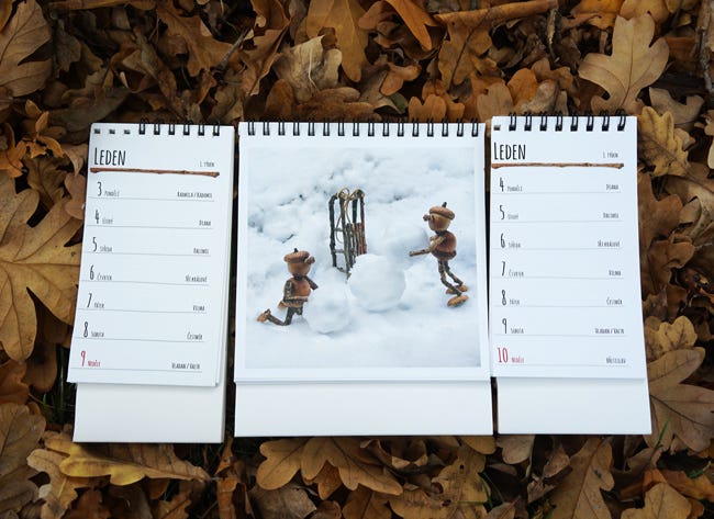 Cože? Vy nemáte starý kalendář? Tak to si rychle kupte ten aktuální dubánčí stolní kalendář, abyste na konci příštího roku měli z čeho tuhletu knížku udělat! A příště zkusíme něco vymyslet s nástěnnými kalendáři :)