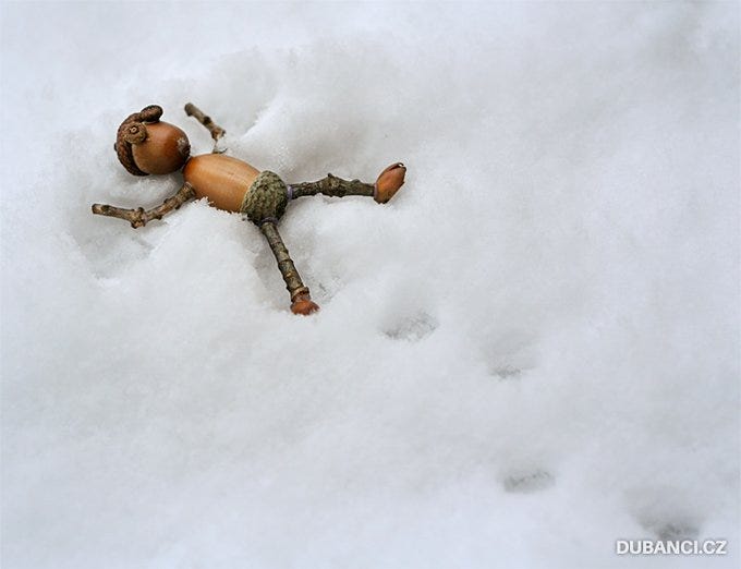Hlásím, že v Praze je první malinkatý poprašek sněhu - to zas bude v dopravě kalamita! A bacha v lese abyste se nestali terčem pro dubánky!
